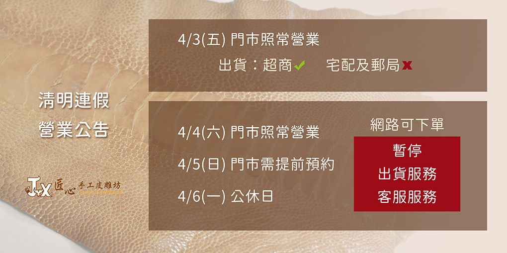 【清明連假營業公告】